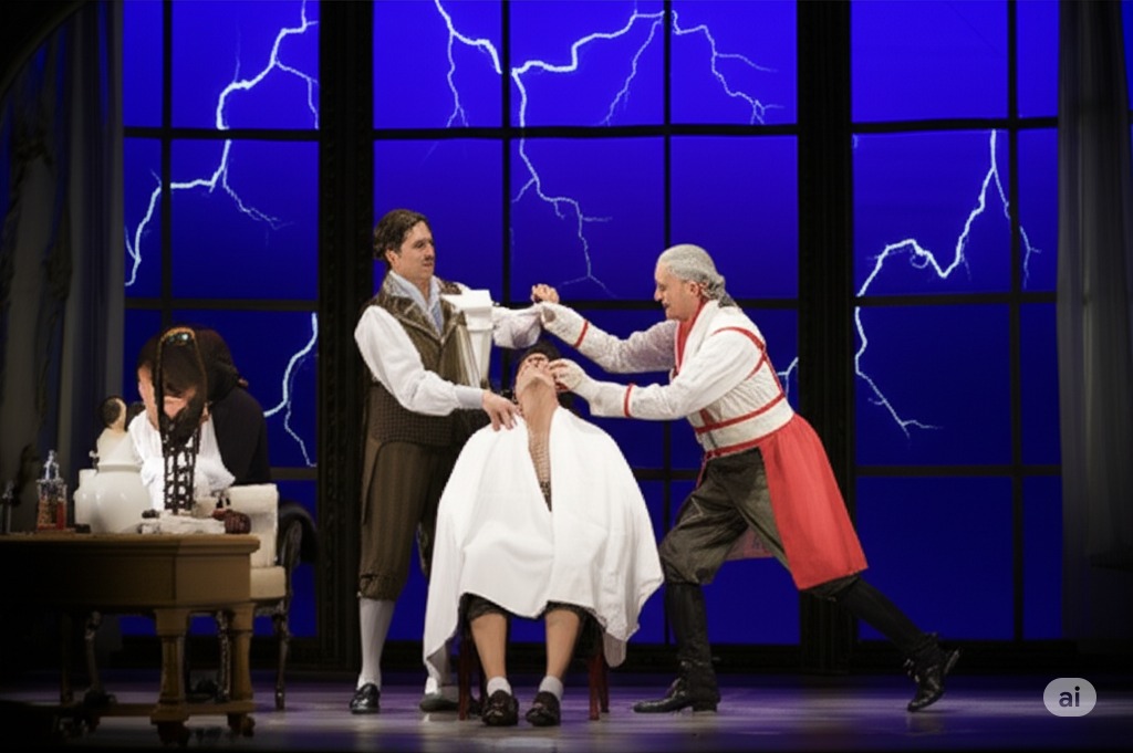 2막 3장: 피가로가 바르톨로 박사의 면도를 하기 위해 도착하여 알마비바와 로지나가 은밀한 대화를 이어갈 수 있도록 주의를 돌린다. 피가로는 박사의 얼굴에 비누를 칠하고, 박사는 불편함과 의심스러움을 느낀다.