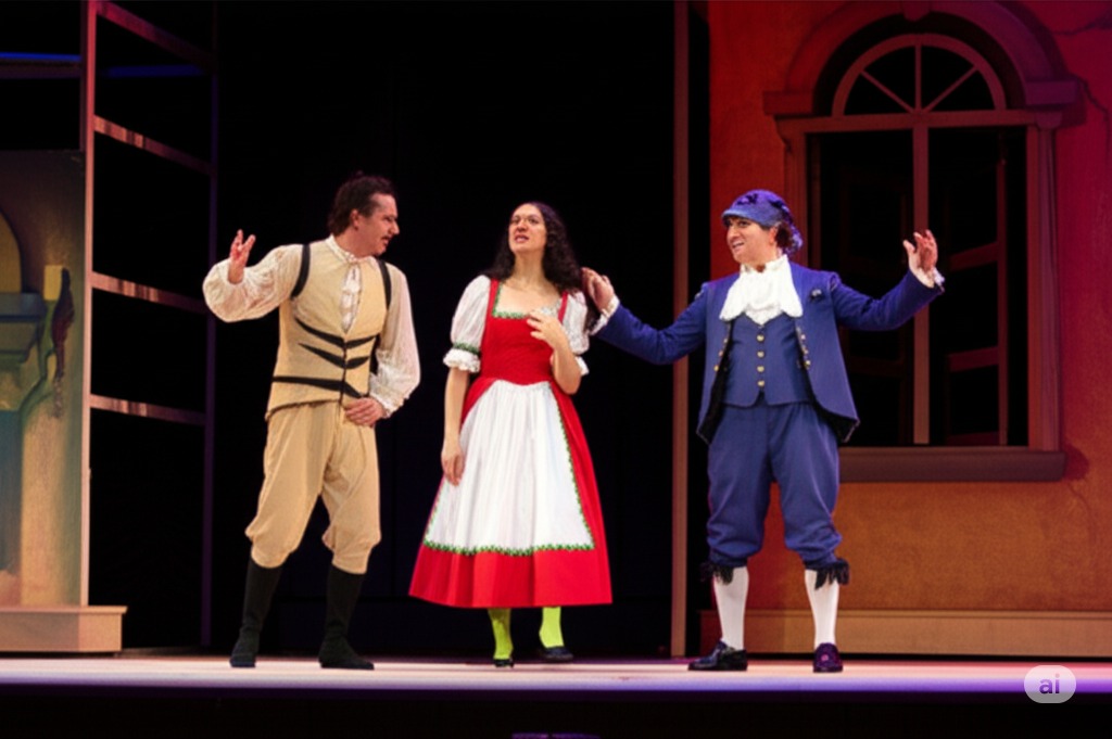 2막 3장: 아를레키노는 창문을 통해 도망치고 콜롬비나는 "오늘 밤, 그리고 영원히 당신의 것이에요!"라고 외친다. 관객 속에 있던 실비오가 이 대사에 반응한다.
