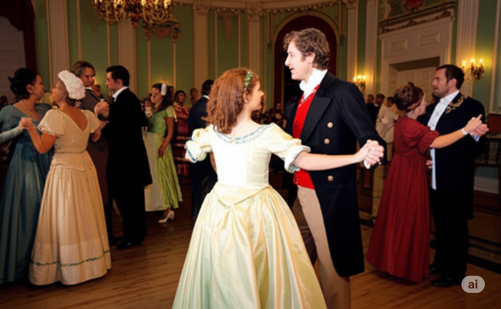 - 1장: 라린 영지에서의 무도회. 손님들이 춤을 추는 활기찬 무도회 장면을 포착합니다. 오네긴은 지루하고 짜증스러워하는 표정으로 묘사되며, 렌스키와 타티아나가 지켜보는 가운데 올가와 춤을 춥니다.