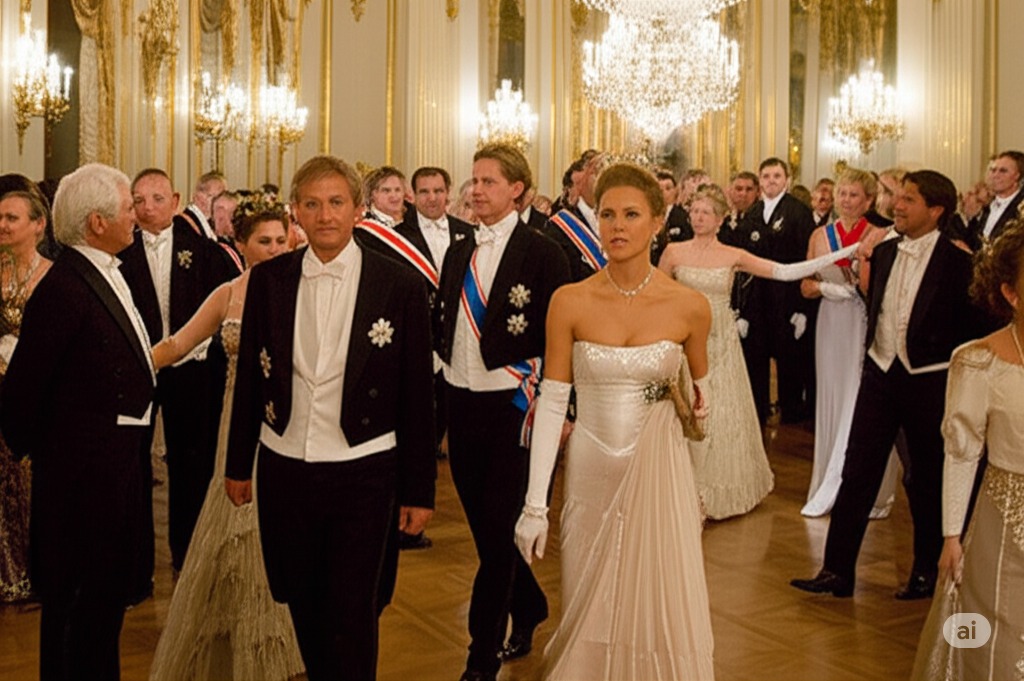 - 1장: 상트페테르부르크 귀족 저택의 성대한 무도회. 우아하게 차려입은 손님들로 가득 찬 화려하고 호화로운 무도회장을 보여줍니다. 이제 세련되고 위엄 있는 공주가 된 타티아나는 주목의 중심에 서서 나이 든 장군과 대화하고 있습니다. 오네긴은 놀라움과 후회로 그녀를 바라보고 있습니다.