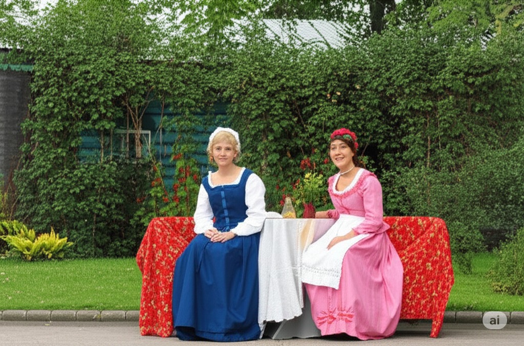 - 1장: 라린 영지의 정원. 햇살 좋은 날, 러시아 시골 영지의 울창한 정원을 묘사하겠습니다. 라리나 부인과 유모 필리피예브나는 앉아 있고, 올가와 타티아나는 가까이에 있습니다. 그들의 대화를 반영하여 평화로운 분위기를 연출할 것입니다.